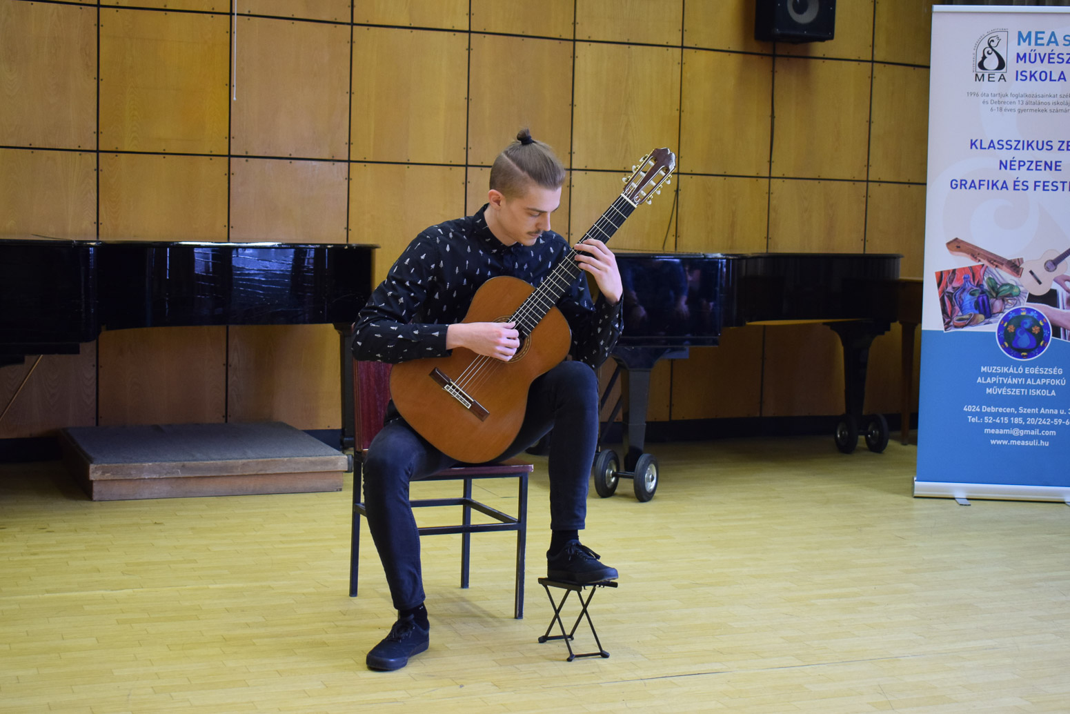 Május 7 -én, szombaton zajlott le a II. Hajdú –Bihar Megyei Gitárverseny a MEA Alapfokú Művészeti Iskola és a Debreceni Egyetem Zeneművészeti Kar közös szervezésében. A megye számos művészeti iskolájából, mintegy 25 ifjú tehetség mérette meg magát a minősítő versenyen. A három tagú zsűri tagjai dr. Papp Sándor, dr. Duffek Mihály és Kapitány József voltak. A magas színvonalú rendezvénynek a Debreceni Egyetem Zeneművészeti Kara adott otthont. A szép eredményekhez gratulálunk a növendékeknek és felkészítő tanáraiknak. A rendezvény fő támogatói: Arne Mischo (Németország), Muzsikáló Egészség Alapítvány, Papp Dávid (a kötelező mű szerzője), Szent Anna hangszeráruház, Cornett hangszercentrum, Kaligráf nyomda. Az összesített eredmények megtekintése...