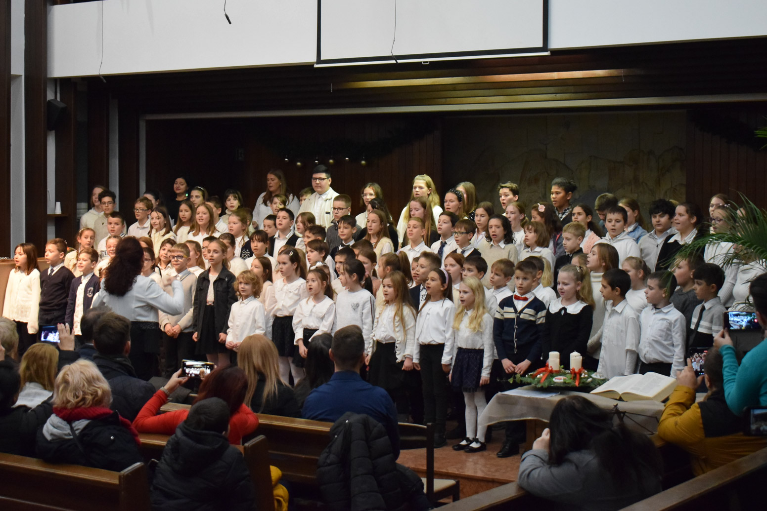 A MEAsuli növendékei egy színes és színvonalas koncerttel tették emlékezetessé az adventi várakozás időszakát. A népzenészek műsorával indult a hangverseny, akiknek sikerült meglepni a közönséget, mivel nemcsak magyar karácsonyi dallamokat hallhattunk, hanem a jól ismert angol énekek is megszólaltak citerájukon. Szinte minden tanszakunk képviseltette magát. A zongora, hegedű, furulya, fuvola és gitáros műsorok között nagy tapssal jutalmazta a közönség Bartók egyik áthangszerelését, amely gitár és fuvola duóban lett előadva illetve természetesen a szolfézs csoportok záró összeállítása is nagy sikert hozott. Gratulálunk a fellépőknek és a felkészítő tanároknak!